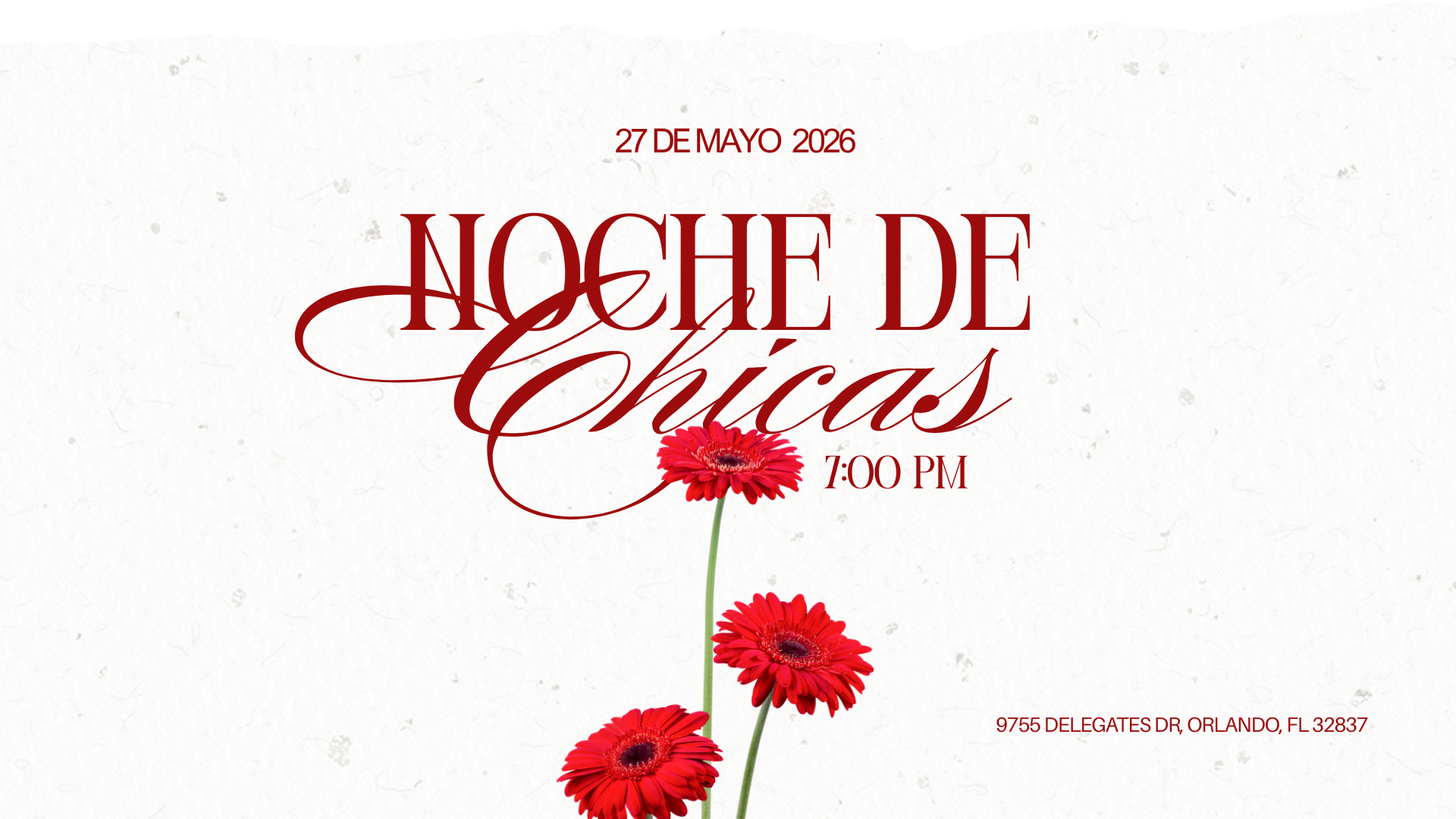 Por eso estás invitada a nuestra Noche de Chicas, un evento que se llevará a cabo el miércoles 27 de Mayo a las 7pm, en 9755 Delegates Dr. Orlando, FL 32837 con nuestra Pastora Lorena Gamba. Será una noche para fortalecer nuestra fe, crecer espiritualmente y hacer nuevas amistades con mujeres maravillosas que buscan lo mismo.